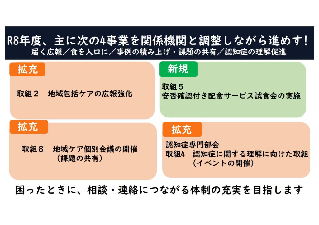 令和8年3月5日(木曜日)に、第2回熱田区地域包括ケア推進会議を開催しました。各部会から、今年度の取組を報告するとともに、令和8年度の取組計画について意見交換を行いました。取組状況はパワーポイントで報告し、多くの委員の皆さまから忌憚ないご意見・ご感想をいただきました。特に、支援の必要な人に、これらの取組がきちんと届く広報の工夫についてご意見をいただきました。令和8年度の活動へ活かしていきます。
